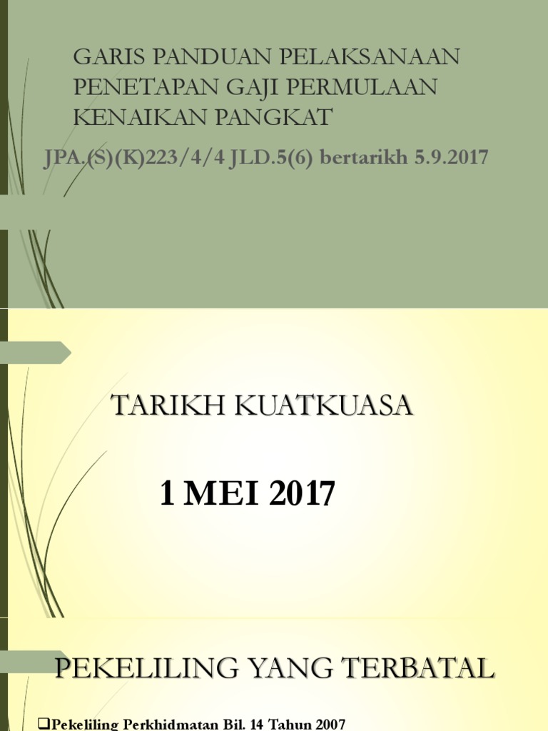 Pekeliling perkhidmatan bilangan 14 tahun 2007. Pekeliling perkhidmatan ini bertujuan untuk melaksanakan saraan baruperkhidmatan awam (sbpa) bagi perkhidmatan polis diraja malaysia (pdrm) 20. Terkejut juga rupanya kita ada hampir 20 laluan untuk naik pangkat dalam dunia perguruan nih! Boleh, sekiranya gaji akhir di gred terdahulu lebih tinggi daripada gaji maksimum di. Pekeliling manakah yang dirujuk untuk menetapkan gaji kenaikan pangkat?