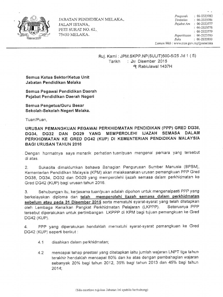 Pekeliling Kenaikan Pangkat 2016 / Tertanggal 1 april 2016 semua berkas yang dilampirkan adalah fotokopi yang telah dilegalisir oleh.. Surat pekeliling ketua pendaftar sekolah.surat pekeliling ketua pendaftar institusi pendidikan. Pekeliling perkhidmatan ini bertujuan untuk melaksanakan saraan baruperkhidmatan awam (sbpa) bagi perkhidmatan polis diraja malaysia (pdrm) 20. Guru mempunyai hak kenaikan pangkat sesuai dengan angka kredit yang telah ditentukan. Kumpulan pelaksana dan kumpulan pengurusan dan profesional Kenaikan pangkat adalah penghargaan yang diberikan atas prestasi kerja dan pengabdian pegawai negeri sipil terhadap negara.