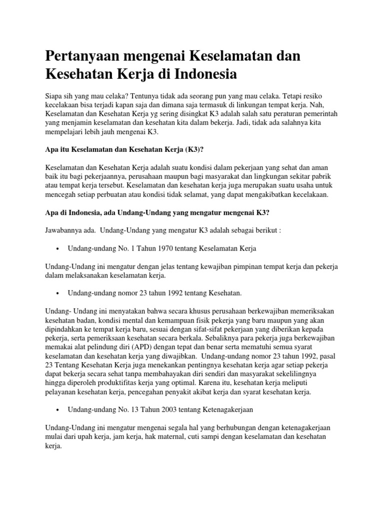 Uu 13 2003 Welcome To Web Viewpenjelasan Atas Undang Undang Republik Indonesia Doc Document from static.dokumen.tech Kerana keseronokan untuk mendapatkan pekerjaan baru terdapat piawaian profesional yang semua pekerja lakukan di tempat kerja. 5 tahun 2018 tentang keselamatan dan kesehatan kerja (k3) 5. Tempat kerja, adalah upaya memberikan pertolongan pertama secara cepat dan tepat kepada pekerja/buruh dan/atau orang lain yang berada di tempat kerja, yang iii. · melalui saluran pencernaan saluran pencernaan merupakan jalan lain untuk masuknya zat kimia kedalam tubuh. Peraturan bersama 3 menteri tentang pemberian asi di tempat kerja. Ada beberapa perubahan pada seksyen dalam peraturan baru ni. Intensitas tekanan dalam bekerja pasti akan terasa berat jika kamu tidak bisa beradaptasi secepat mungkin dengan itu. Maklum saja, setiap tempat kerja memiliki peraturan dan budaya yang berbeda.